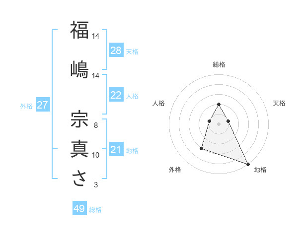 福嶋 宗真ささんの総格は49画の2点!
