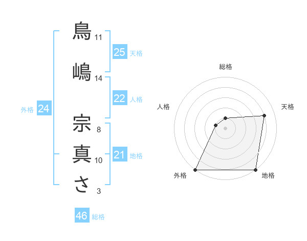 鳥嶋 宗真ささんを姓名の画数から五運を鑑定