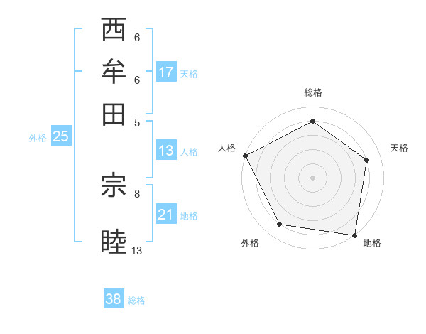 西牟田 宗睦さんを姓名の画数から五運を鑑定