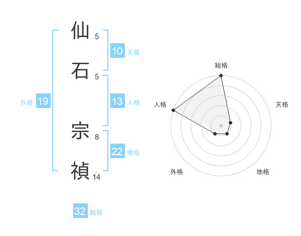 仙石 宗禎さんの総格は32画の5点!