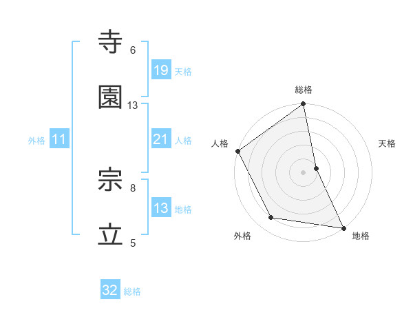 寺園 宗立さんの地格は13画の5点!
