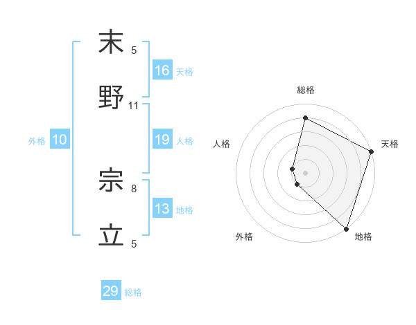 末野 宗立さんの総格は29画の4点!
