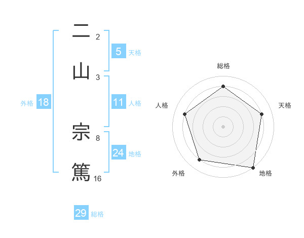 二山 宗篤さんを姓名の画数から五運を鑑定