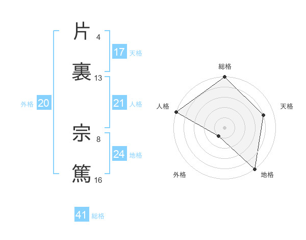 片裏 宗篤さんの天格は17画の4点!