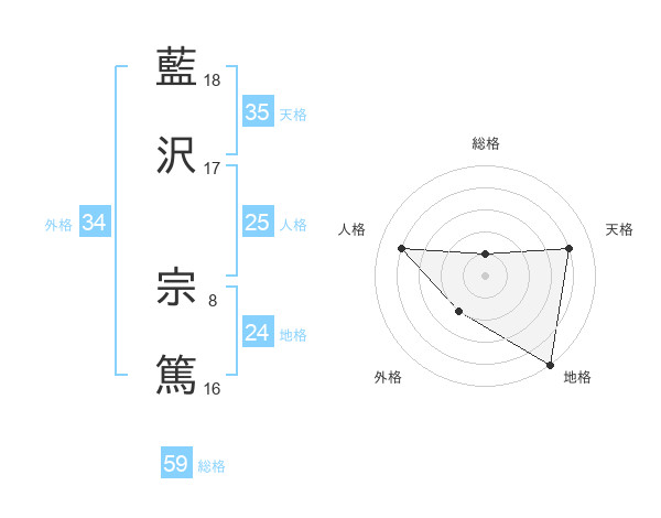 藍沢 宗篤さんを姓名の画数から五運を鑑定