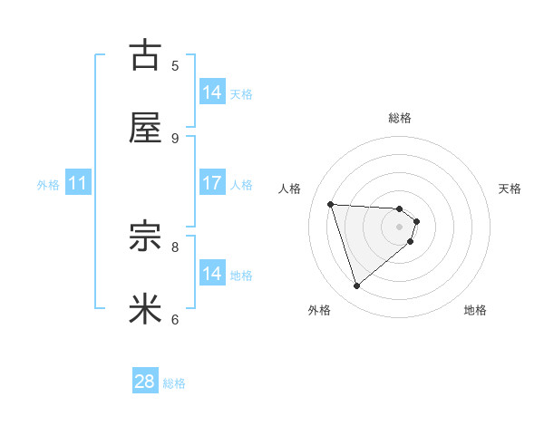 古屋 宗米さんの総格は28画の1点!