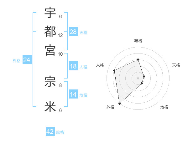 宇都宮 宗米さんを姓名の画数から五運を鑑定