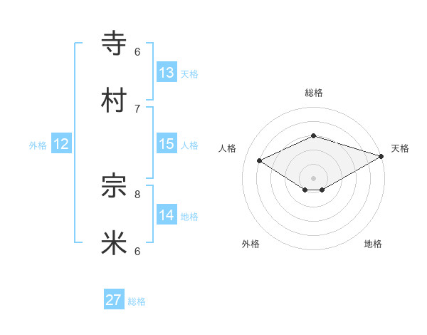 寺村 宗米さんを姓名の画数から五運を鑑定