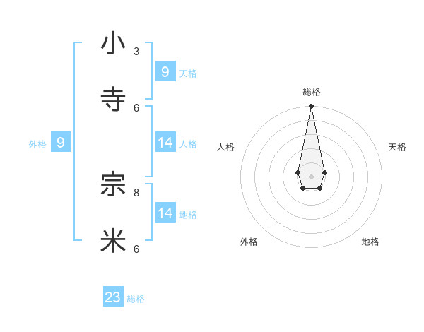 小寺 宗米さんの総格は23画の5点!