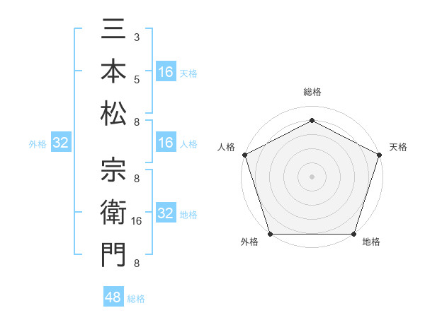 三本松 宗衛門さんを姓名の画数から五運を鑑定