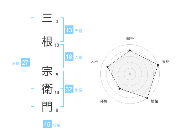 三根 宗衛門さんを姓名の画数から五運を鑑定