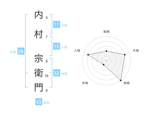内村 宗衛門さんの総格は43画の2点!