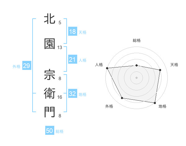 北園 宗衛門さんの総格は50画の2点!