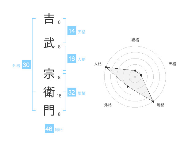 吉武 宗衛門さんの天格は14画の1点!