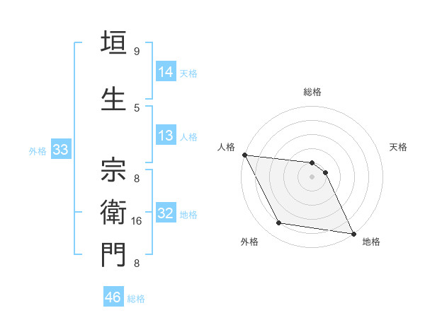 垣生 宗衛門さんの外格は33画の4点!