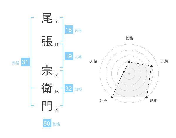 尾張 宗衛門さんを姓名の画数から五運を鑑定