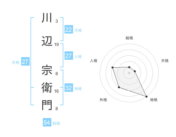 川辺 宗衛門さんを姓名の画数から五運を鑑定