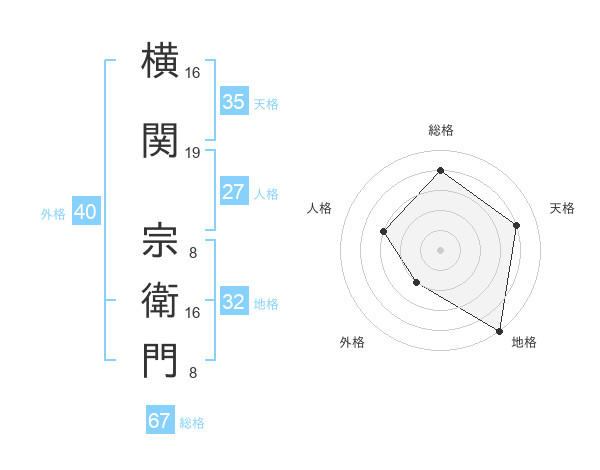 横関 宗衛門さんを姓名の画数から五運を鑑定
