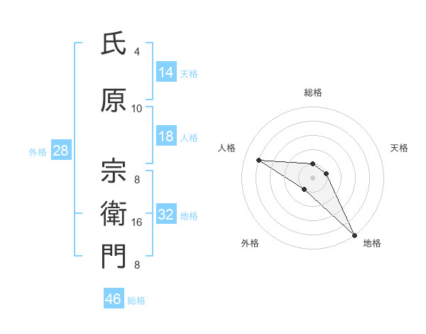 氏原 宗衛門さんを姓名の画数から五運を鑑定