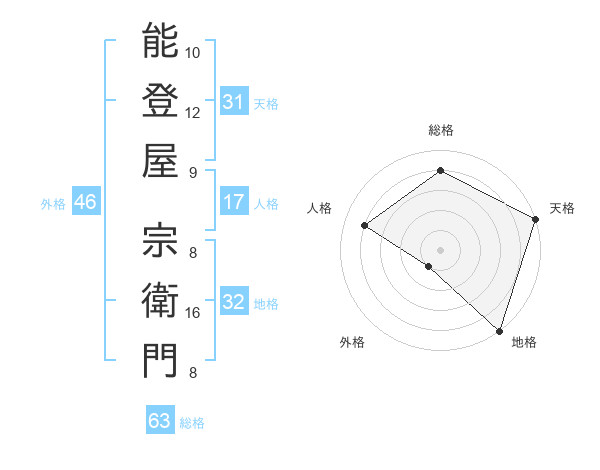 能登屋 宗衛門さんを姓名の画数から五運を鑑定