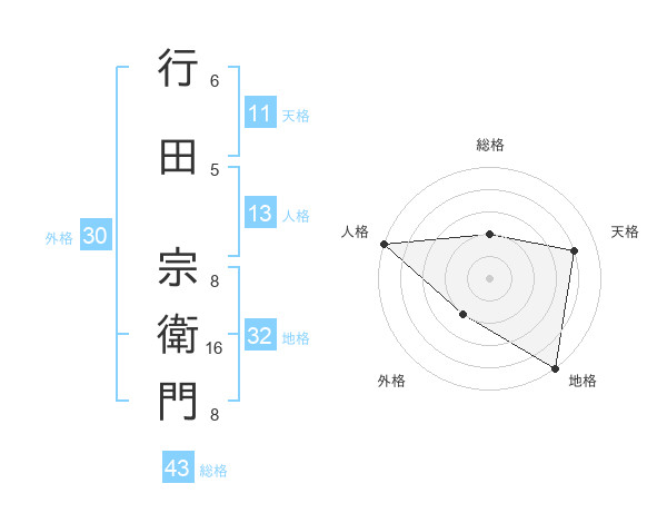 行田 宗衛門さんを姓名の画数から五運を鑑定
