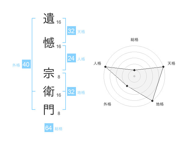 遺憾 宗衛門さんの総格は64画の1点!