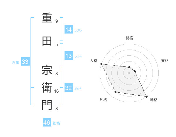 重田 宗衛門さんを姓名の画数から五運を鑑定