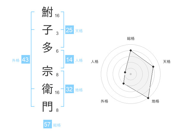 鮒子多 宗衛門さんを姓名の画数から五運を鑑定