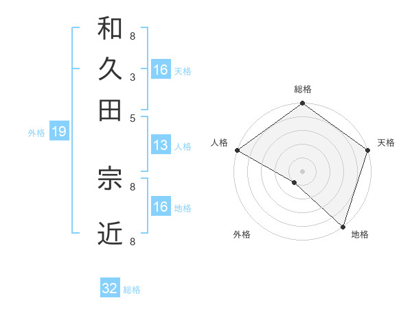 和久田 宗近さんを姓名の画数から五運を鑑定