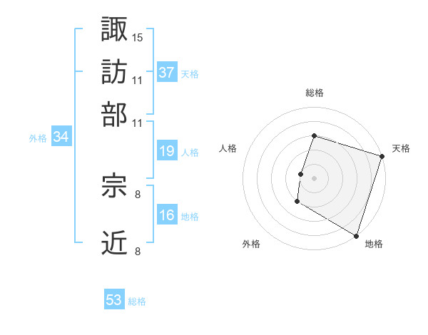 諏訪部 宗近さんの総格は53画の3点!