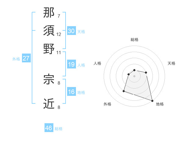 那須野 宗近さんを姓名の画数から五運を鑑定