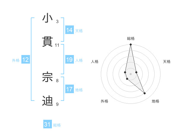 小貫 宗迪さんの総格は31画の5点!