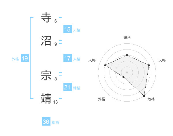 寺沼 宗靖さんの地格は21画の5点!