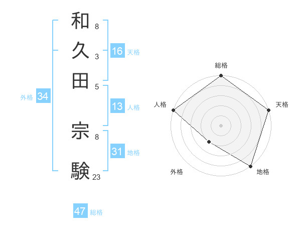 和久田 宗験さんを姓名の画数から五運を鑑定