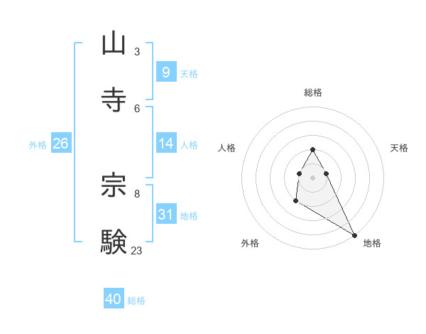 山寺 宗験さんを姓名の画数から五運を鑑定