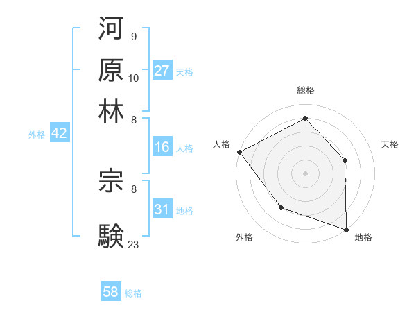 河原林 宗験さんを姓名の画数から五運を鑑定
