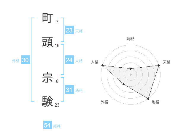町頭 宗験さんの総格は54画の1点!