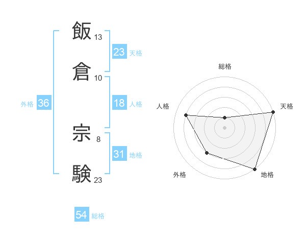 飯倉 宗験さんを姓名の画数から五運を鑑定
