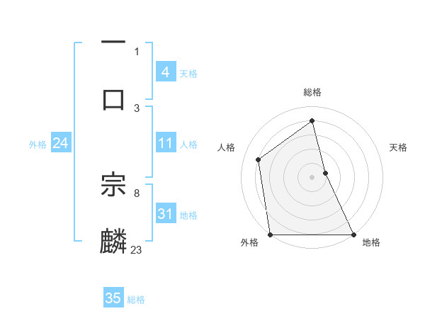 一口 宗麟さんの総格は35画の4点!