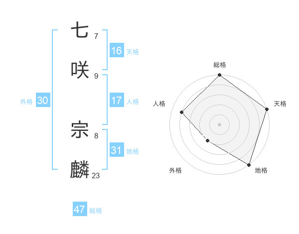 七咲 宗麟さんを姓名の画数から五運を鑑定