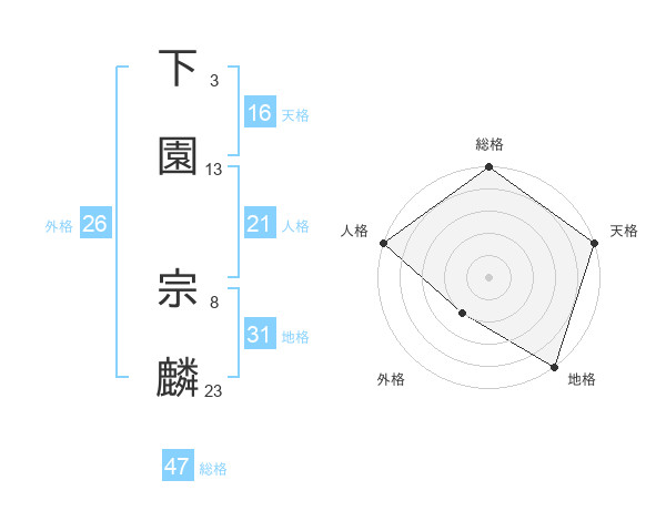 下園 宗麟さんを姓名の画数から五運を鑑定