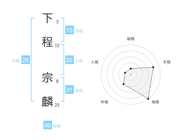 下程 宗麟さんを姓名の画数から五運を鑑定