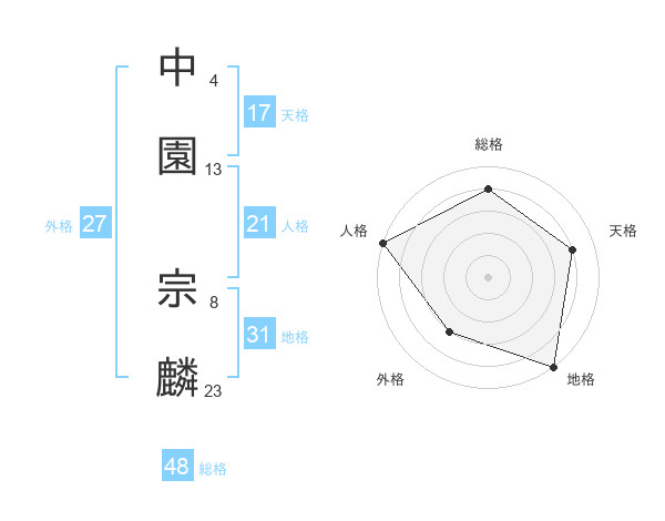 中園 宗麟さんを姓名の画数から五運を鑑定