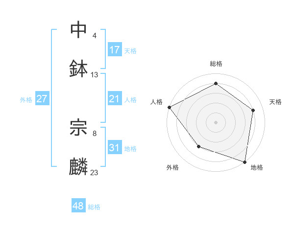 中鉢 宗麟さんを姓名の画数から五運を鑑定