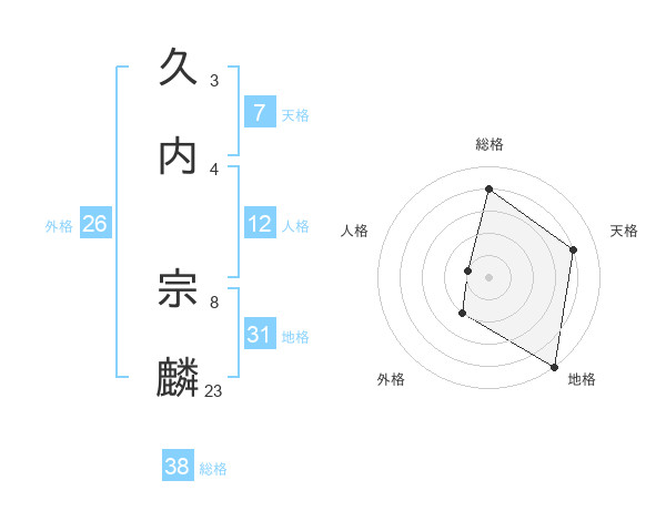 久内 宗麟さんの総格は38画の4点!