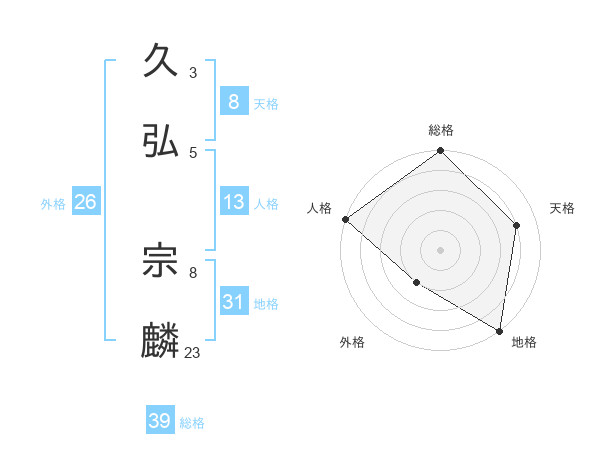 久弘 宗麟さんの総格は39画の5点!