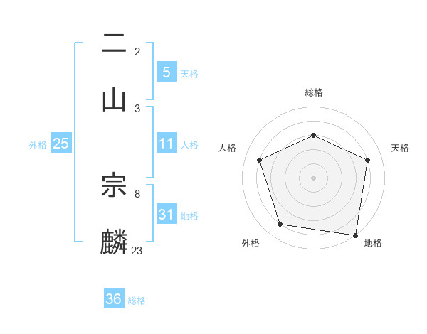 二山 宗麟さんを姓名の画数から五運を鑑定