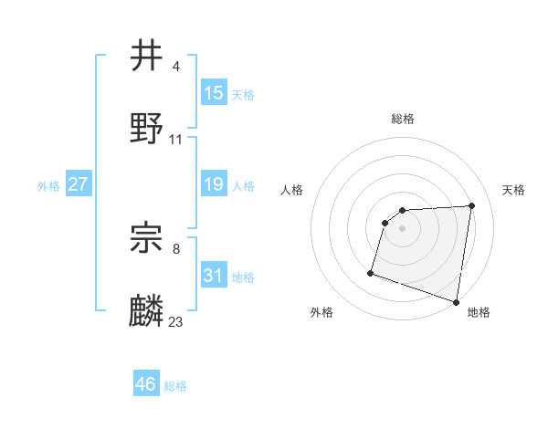 井野 宗麟さんを姓名の画数から五運を鑑定
