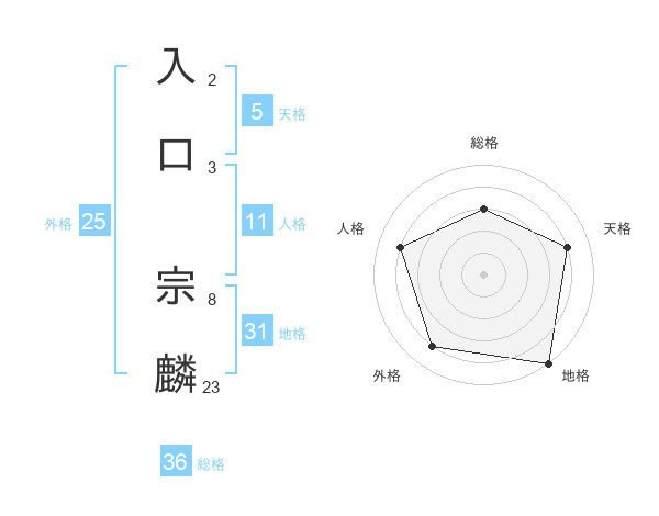 入口 宗麟さんを姓名の画数から五運を鑑定