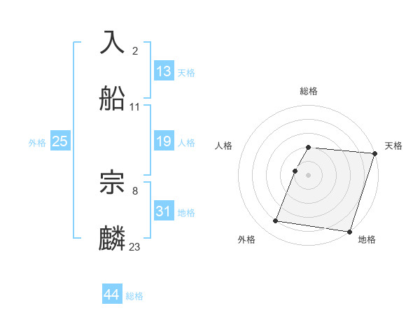 入船 宗麟さんを姓名の画数から五運を鑑定